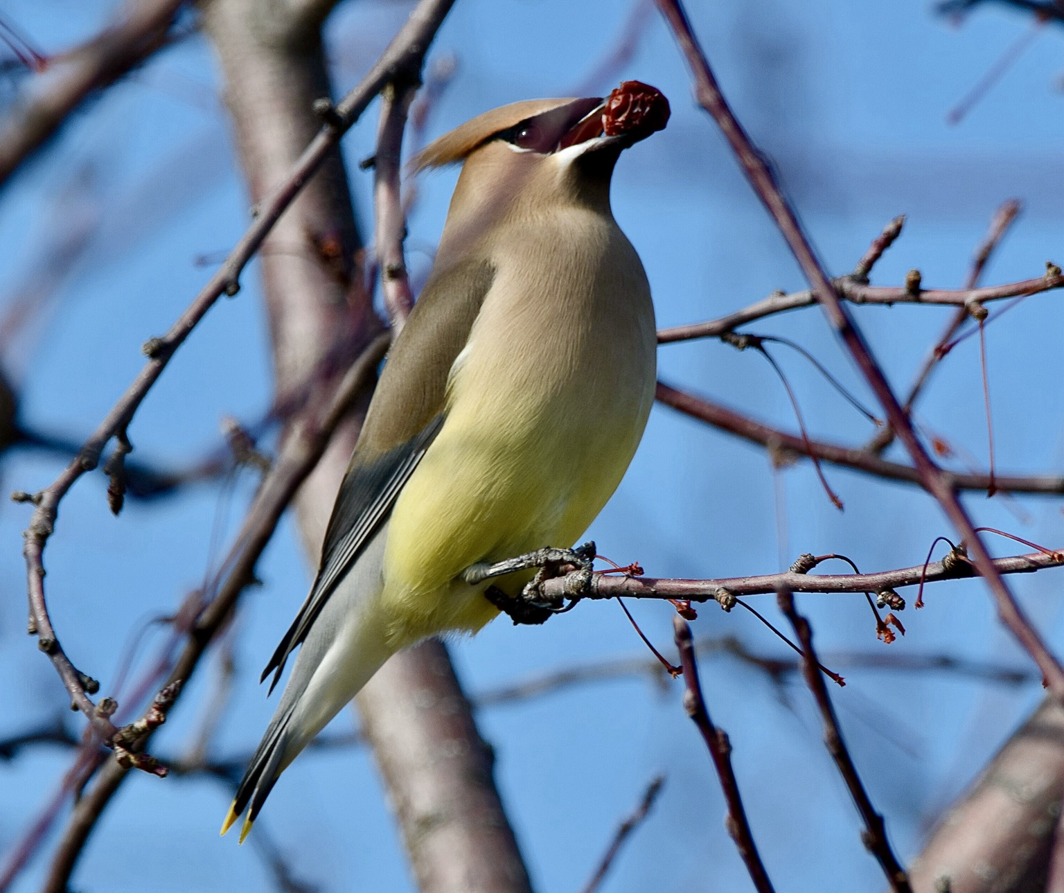One of a plethora of Cedar Waxwings @CTGT and I watched scarfing down - and occasionally dropping - dark red berries on a chilly walk earlier this week.
