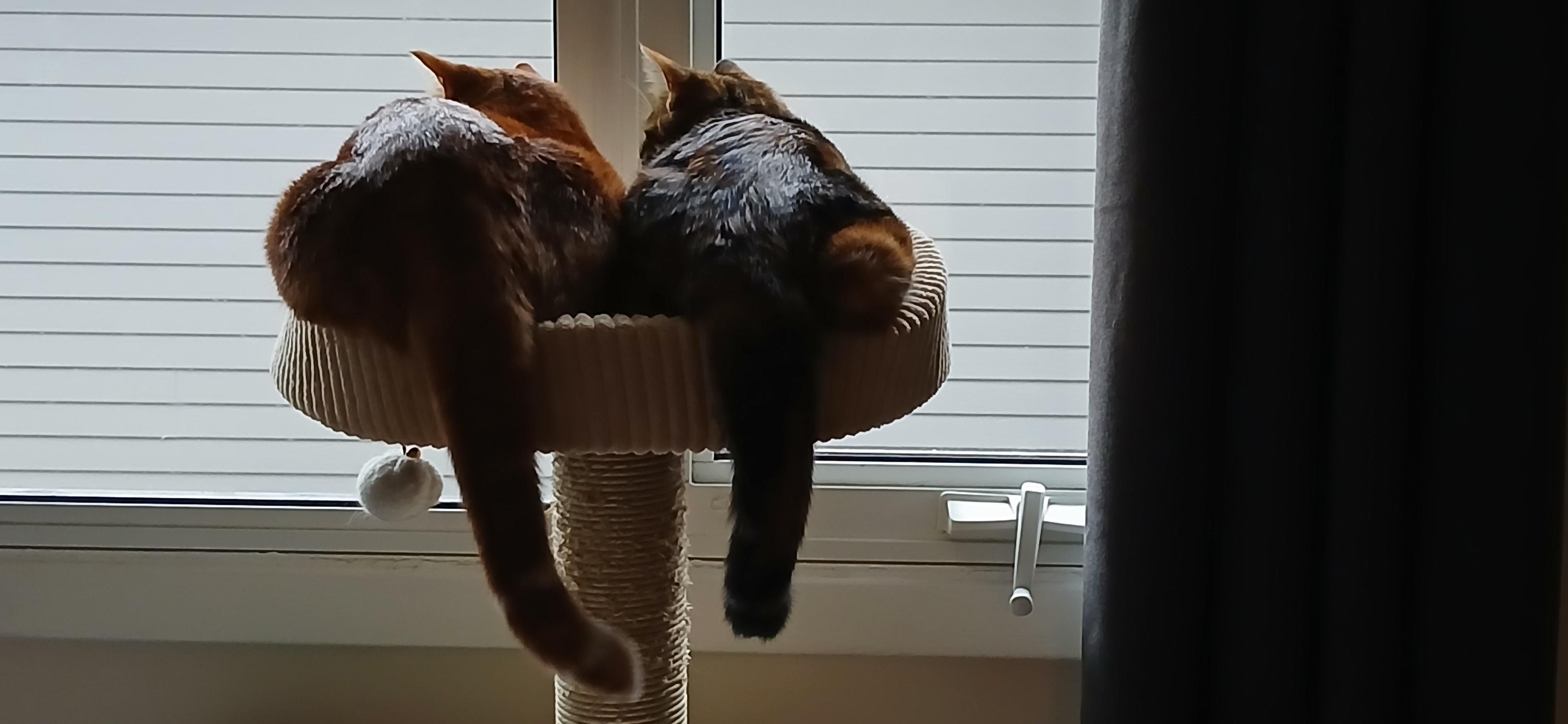 Molly, having a lazy day - scrolling, commenting on bird videos, getting into arguments with other cats