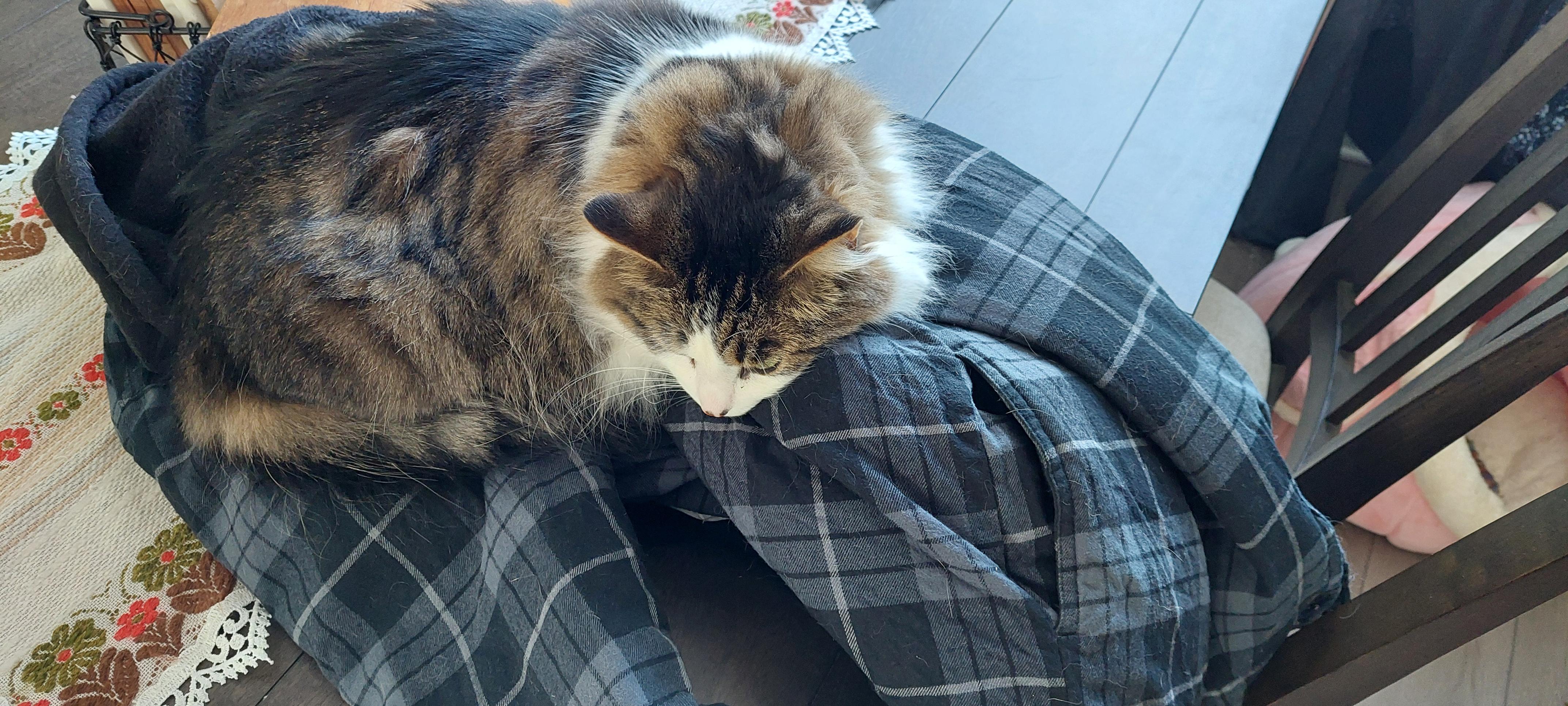 Fluffy has finally learned the pleasures of sleeping and shedding on freshly cleaned laundry!