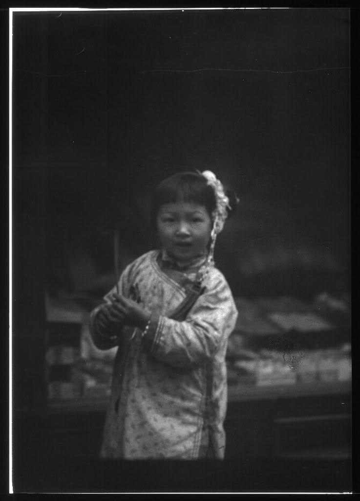 Young girl walking down the street, looking into the camera, Chinatown, San Francisco between 1896 and 1906