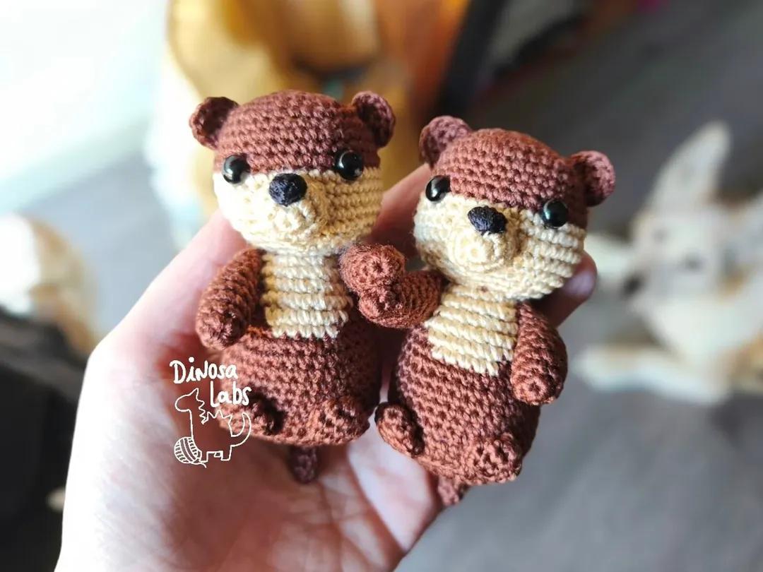 Yo solo vengo a poner dos pequeñas y adorables nutrias tejidas a crochet que se dan la manita en tu TL para que te roben el corazón ❤️🥺
