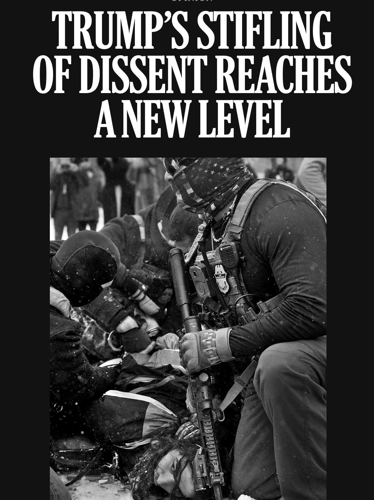 The @nytimes just raised its autocracy warning for the U.S.Minnesota this winter followed the autocrat playbook:Dubious policy → protests → intimidation → force → blame the victims → lie about it.