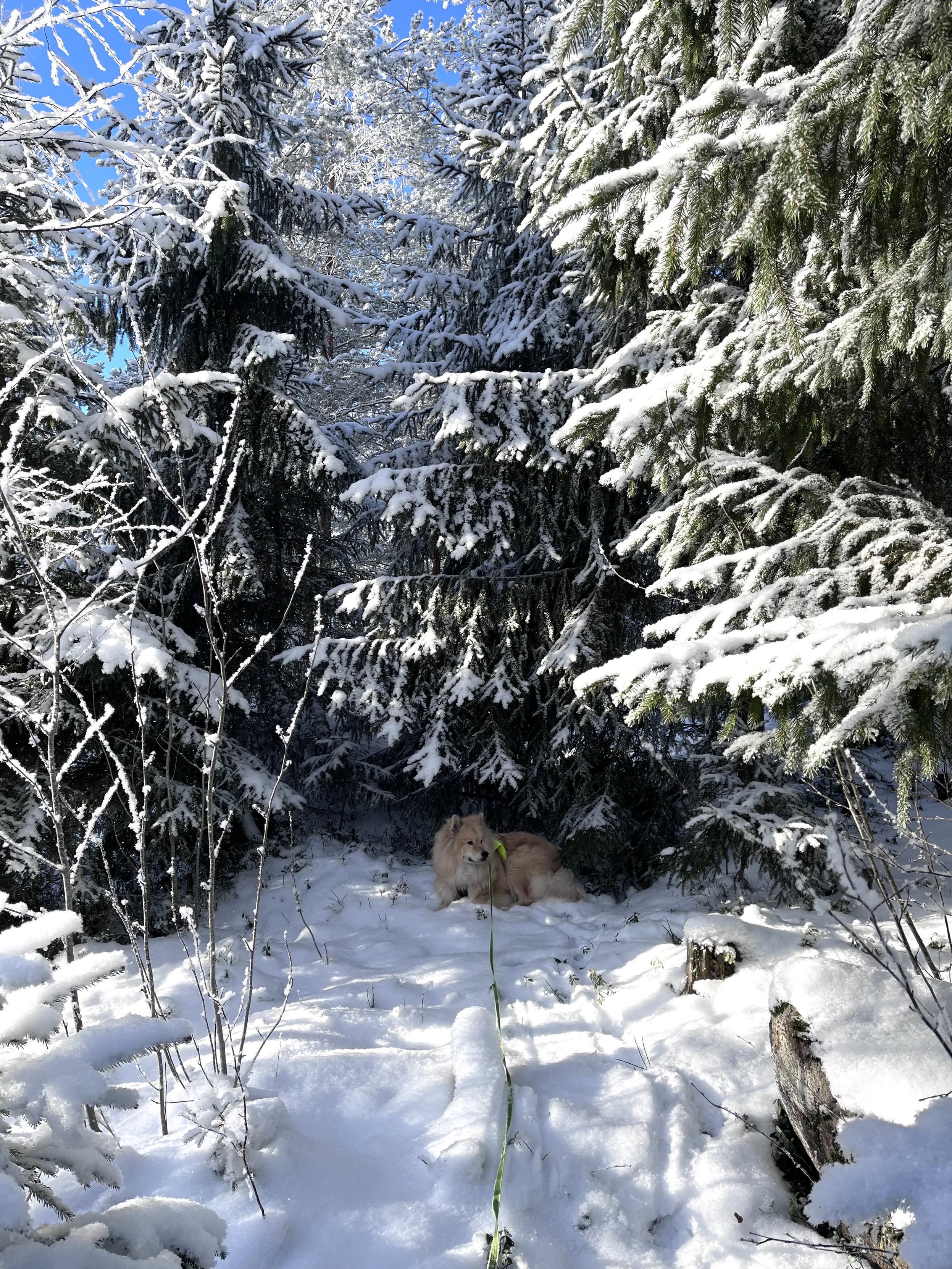 My sweet sofa-croissant dog was really feeling his arctic breed ancestry today and wanted to stay and live in the frosty forest.