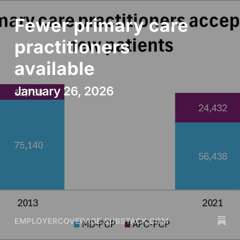 Today in #Employer Coverage: Fewer primary care practitioners available @JAMA_current @ml_barnett https://open.substack.com/pub/employercoverage/p/fewer-primary-care-practitioners?utm_campaign=post-expanded-share&utm_medium=web