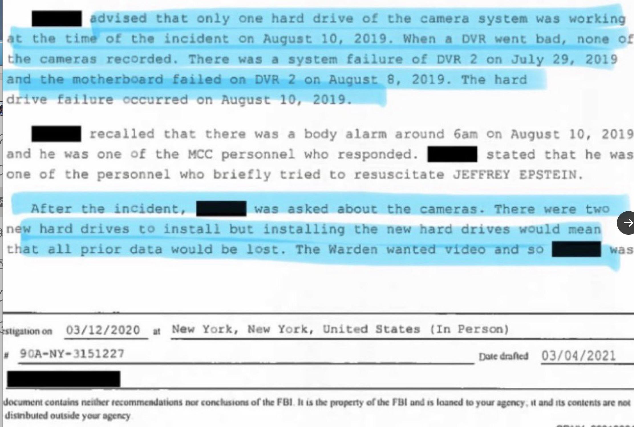 BREAKING: An FBI agent removed the jail DVR after Epsteinâs death â knowing it would wipe all video footage