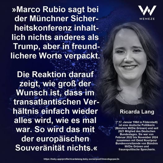 @hart Nein, daß die Reaktion der deutschen Politiker auf die Rede Rubios auf der MSC (nur) Ausdruck eines Wunsches zur Rückkehr zum alten Verhältnis zu den USA sei, ist euphemistisch verharmlosend. Wer die AfD wählt, will die AfD. Wer nach dieser Rede stehend applaudiert, will das "amerikanische Modell" eines ethno-nationalistischen Kulturkampfes mit weißer, christlicher Herrschaft für Deutschland und Europa.Und genau so stellen sie sich europäische Souveränität vor.#MSC #Rubio #Wadephul #Pistorius #CDU #SPD #Europa #Kulturkampf #Christen #Whitesupremacy #USA