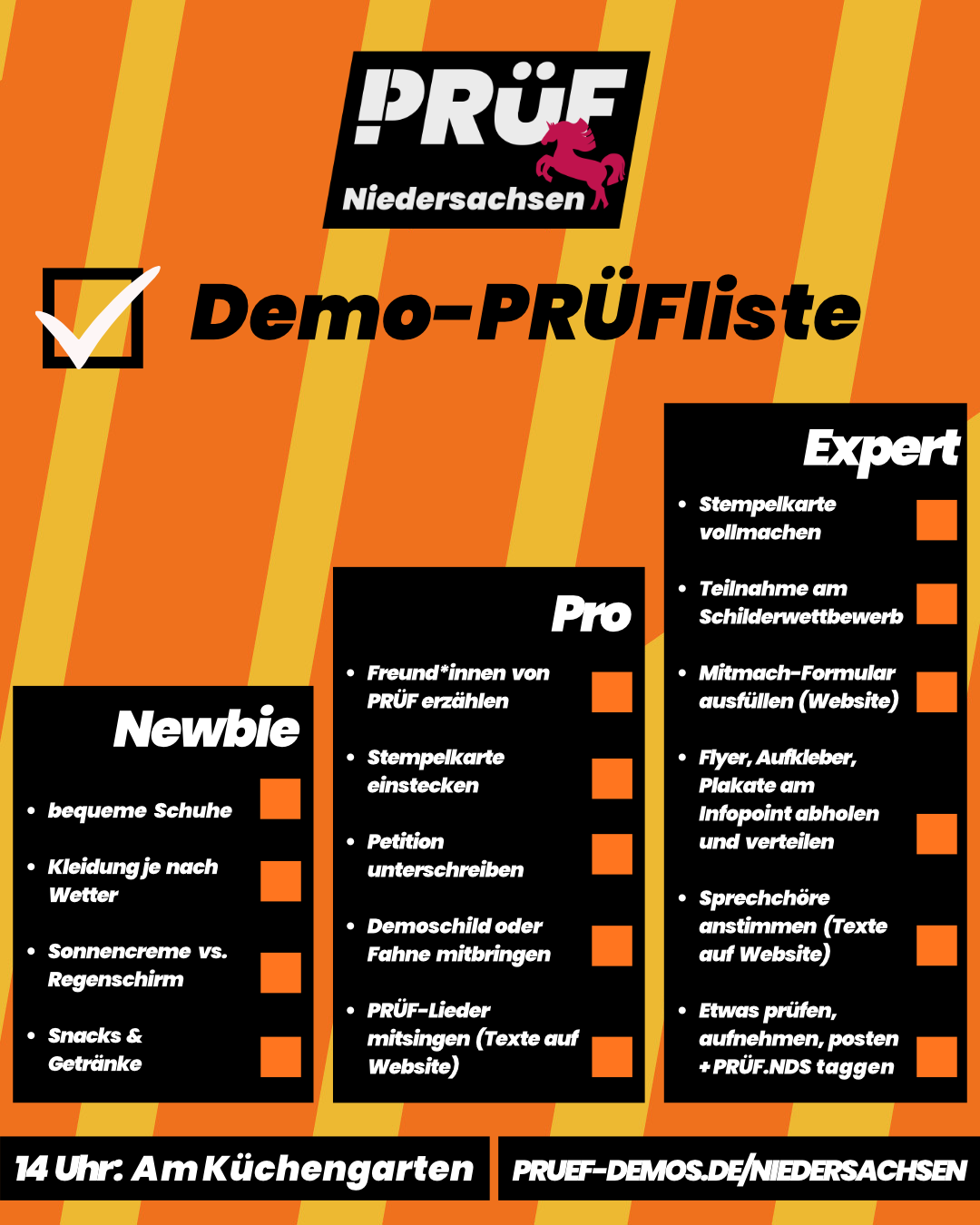 Heute ist ein wunderbarer Tag für eine #pruefdemo!📣 Wir sehen uns ab 14 Uhr 🕑 auf dem Küchengarten in #hannover!