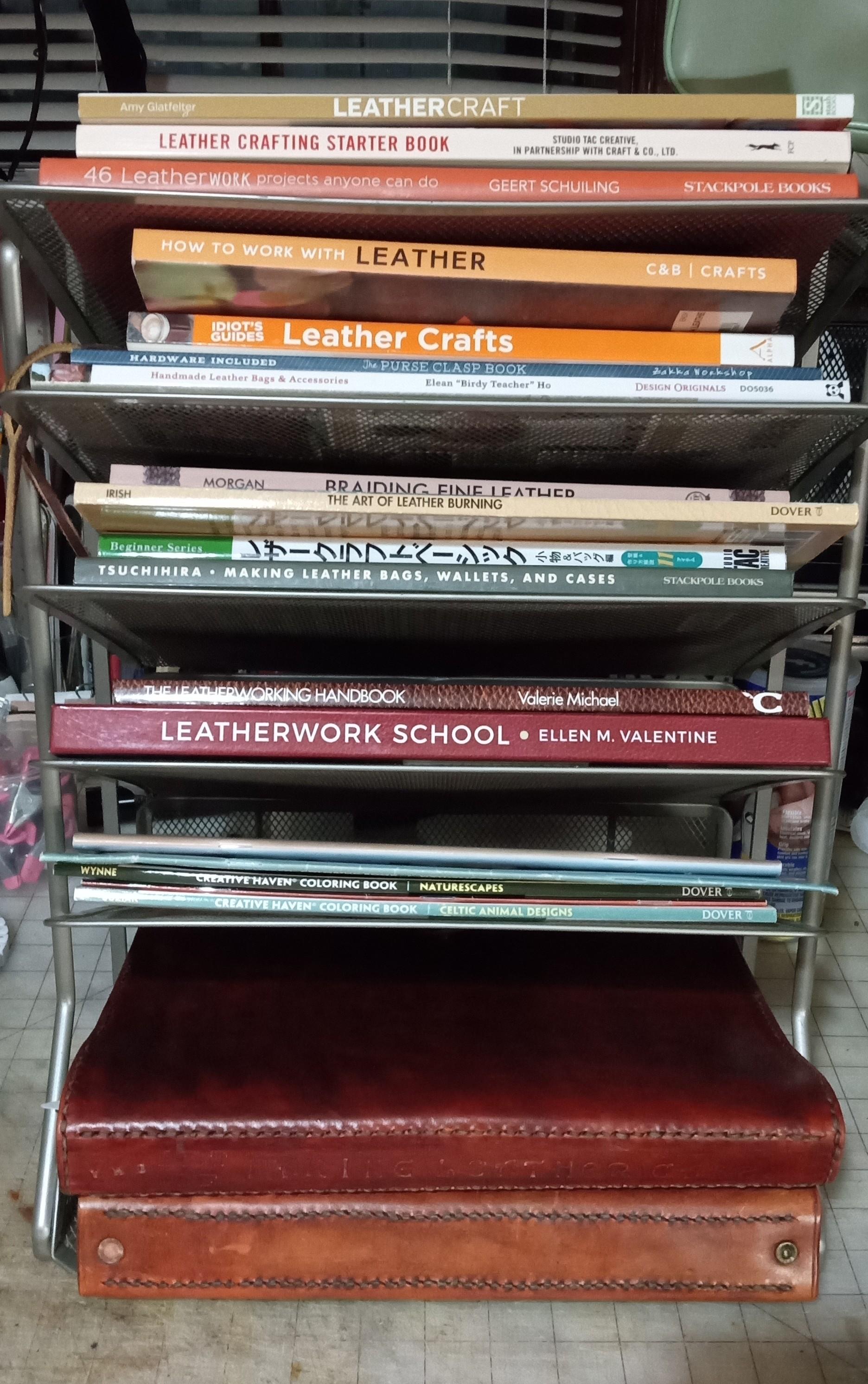 @sbourne Ha! Funny enough I am not tempted by other leather books I have seen. They are retreads of what I already have. The only "new" volumes I have procured lately are e-books from scanned copies of very old volumes, so I can review the old methods of construction. But I am in search of another something that will hold all my issues of Leather Crafter's Journal, a publication I subscribe to. Meanwhile I plan to bind these, like the books on the bottom shelf, by the year of publication.