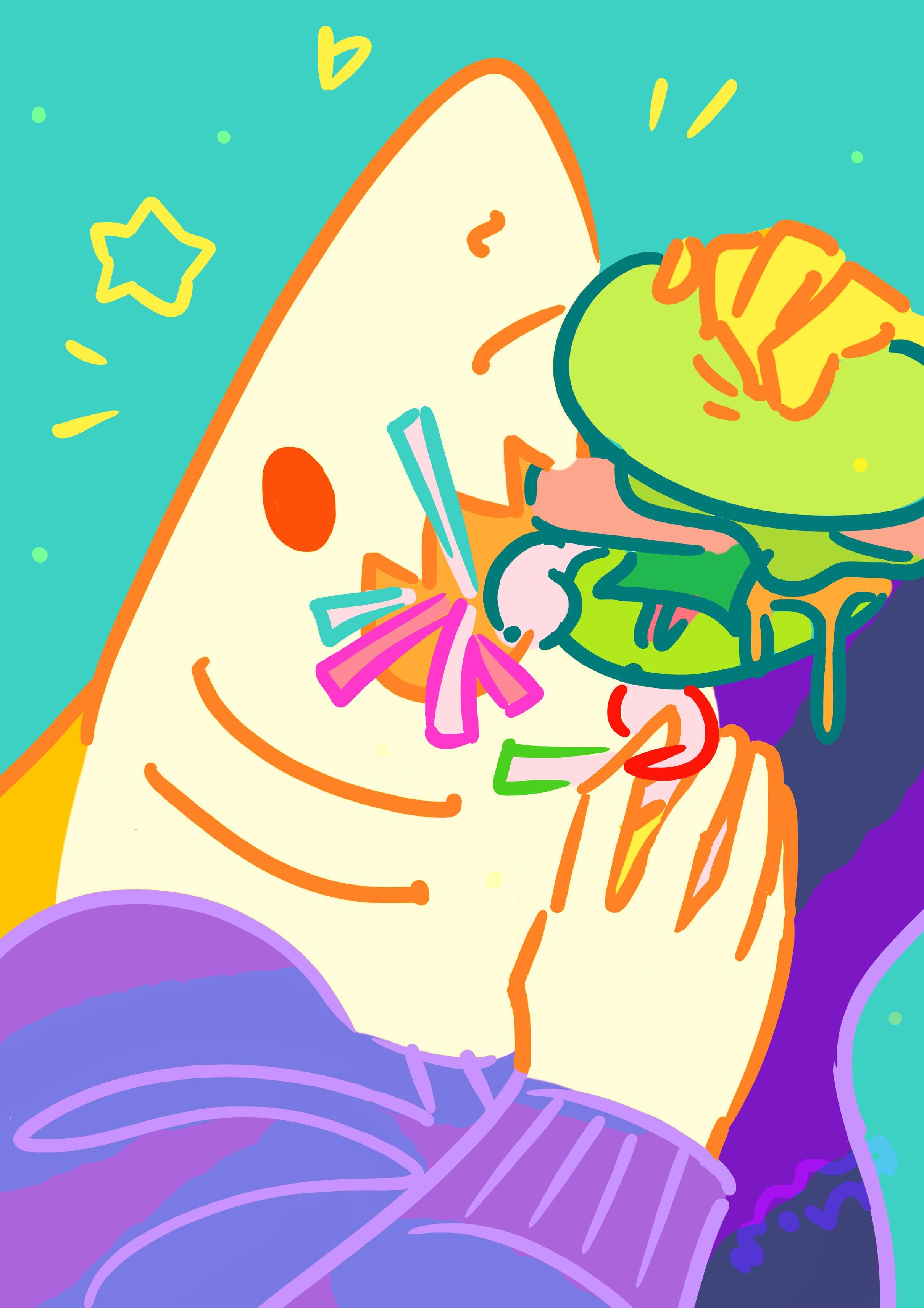 In Seahorse Bay they are eating burgers messily.
