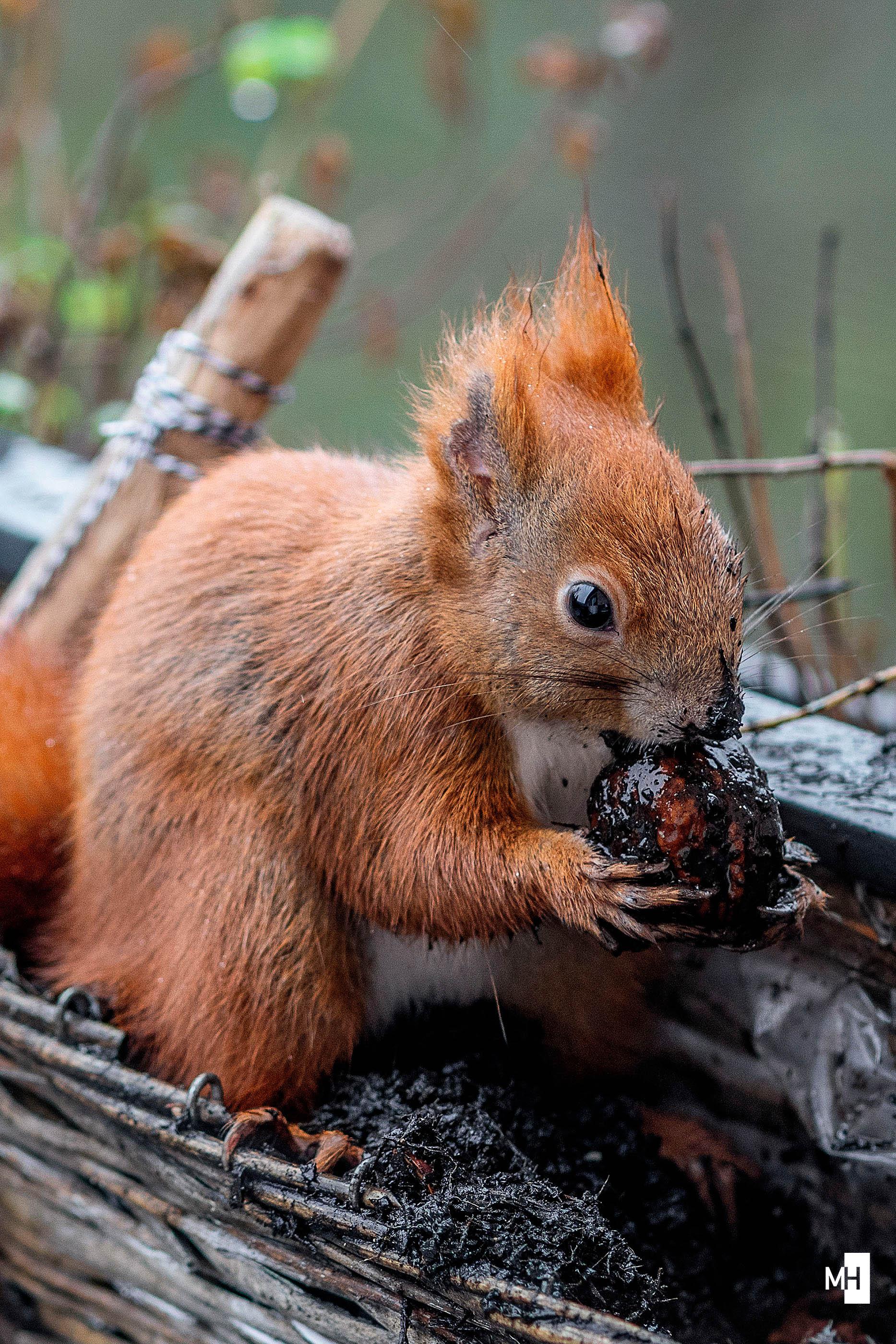 The #Squirrel of the Day for February 2, 2026 wonders if I might have a spare peanut about my person #squirrels
