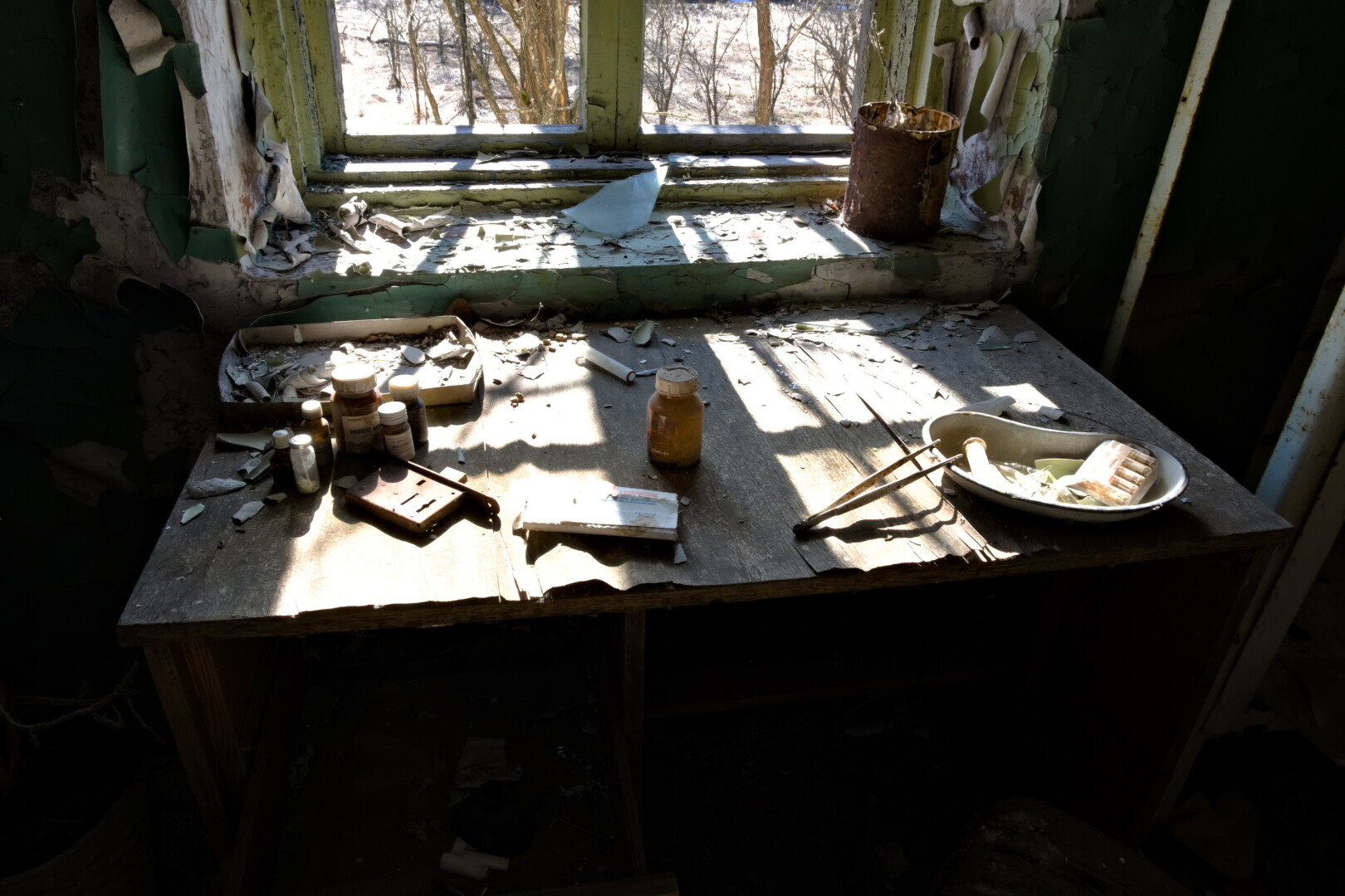 Закінутая лякарня. Вёска Пагоннае, зона адчужэння. Сакавік 2026.
