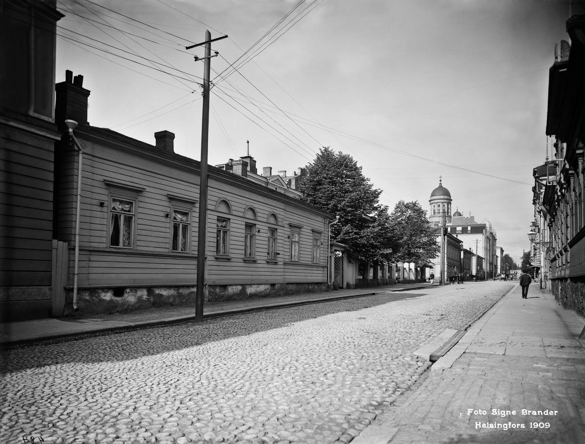 Kirkkokatu 6, 8, 10. (1909, Helsingin kaupunginmuseo)Alkuperäisen kuvan lähde: https://finna.fi/Record/hkm.61EC1AA5-E91D-4B73-8C82-6DF449FEE4A3Valokuvaaja Signe Brander, värit #DeOldify