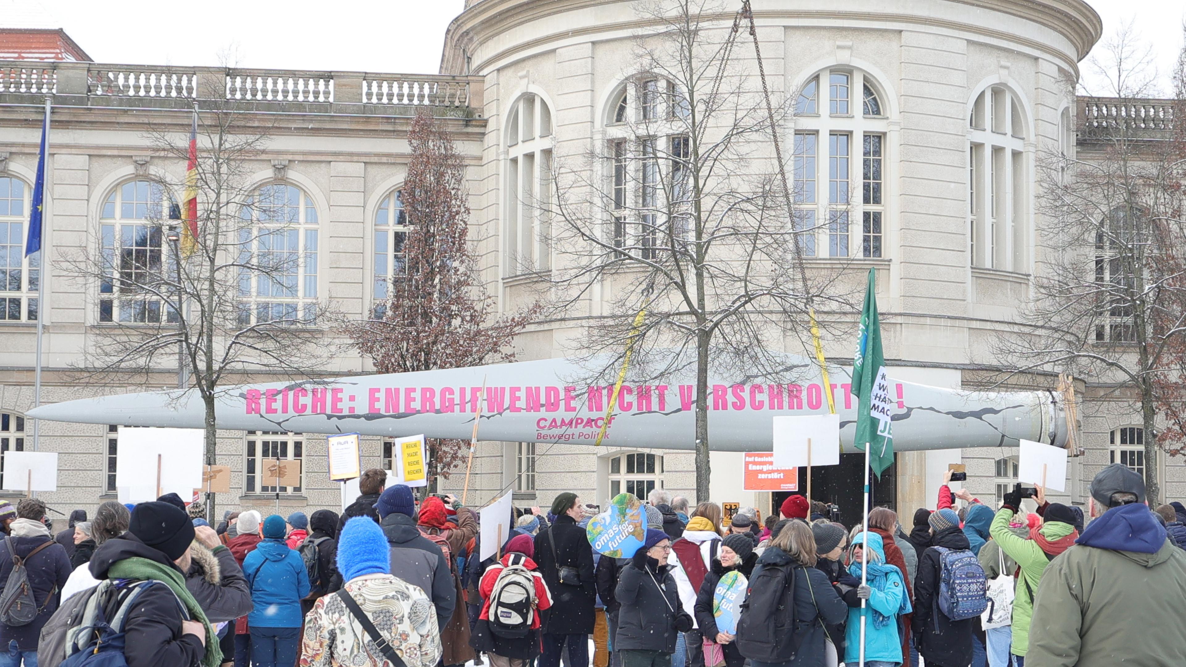 Verschrottet Katherina Reiche jetzt die #Energiewende?Wir & viele andere Menschen, die sich Sorgen machen, waren heute vor dem Wirtschaftsministerium. Denn Reiche plant mit einem neuen Gesetz den Frontalangriff auf die Erneuerbaren. Ihr Netzpaket will erneuerbare Energien unwirtschaftlich machen. Denn Wind- & Solarparks aber auch Menschen mit Solaranlage auf Dach oder Balkon sollen jetzt finanziell ausbaden, dass die Betreiber von Stromnetzen ihre Netze nicht ausreichend ausgebaut haben.