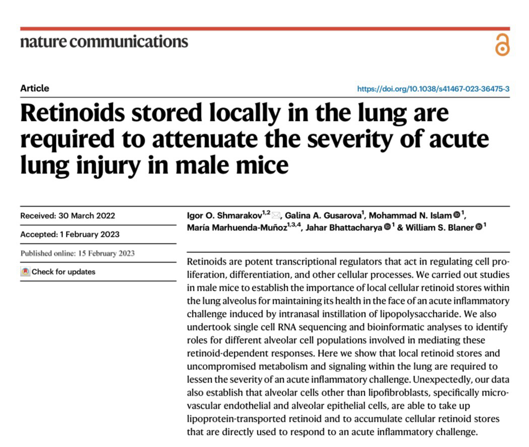 Appreciate presentation by Dr. Verovkina about “Retinoids stored locally in the lung are required to attenuate the severity of acute lung injury in male mice” this morning at the #eldeirylab meeting at #LegorretaCancerCenter