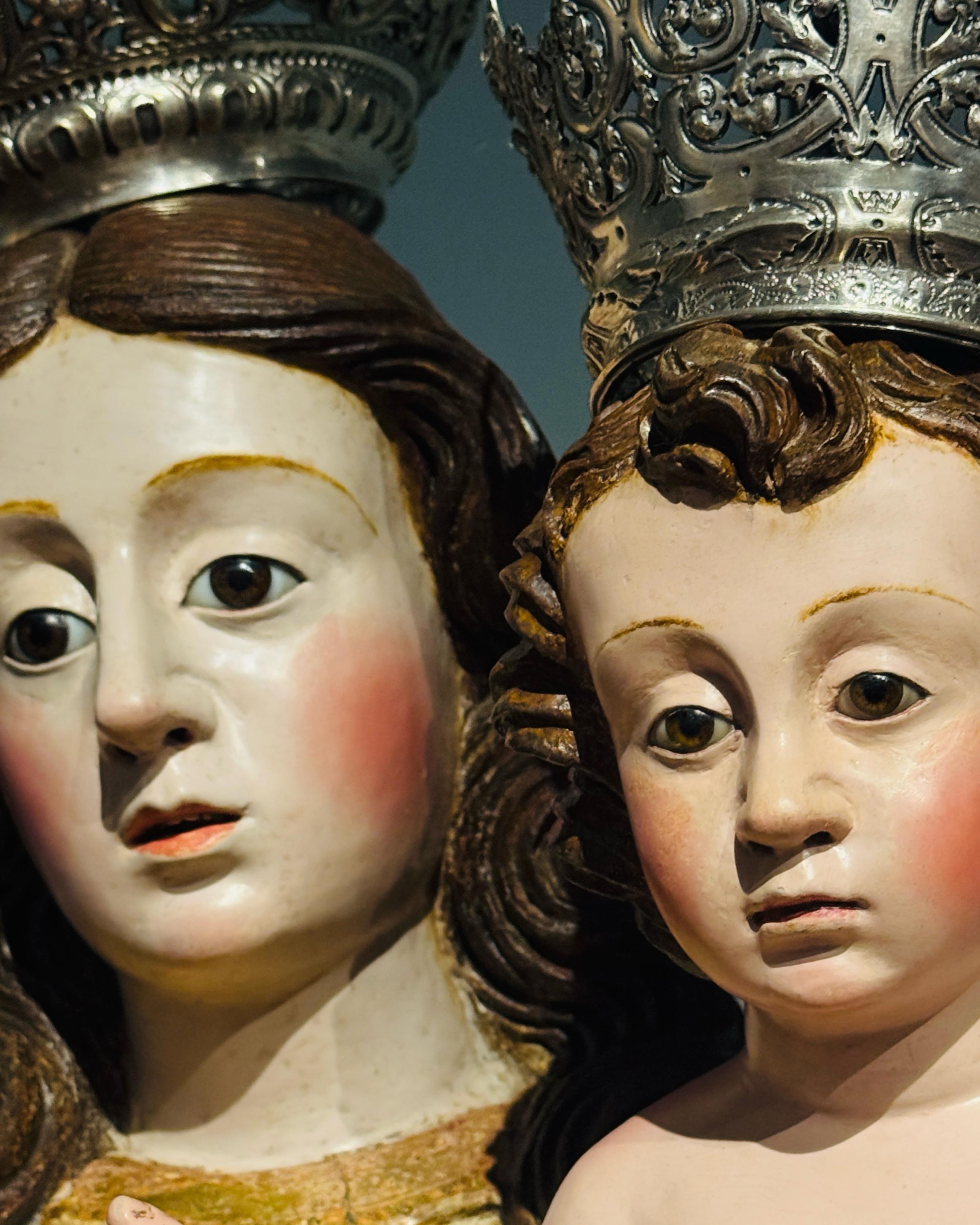 Museoissa käymiseen on monta syytä, joista tärkeimpiä on hassujen patsaiden ihmetteleminen. Olen varma, että näille on perustettu satoja blogeja ja tuhansia Instagram-tilejä. Kuvan tyhjyyteen tuijottavat hahmot kuvasin Madeiran Funchalissa pyhän taiteen museossa.