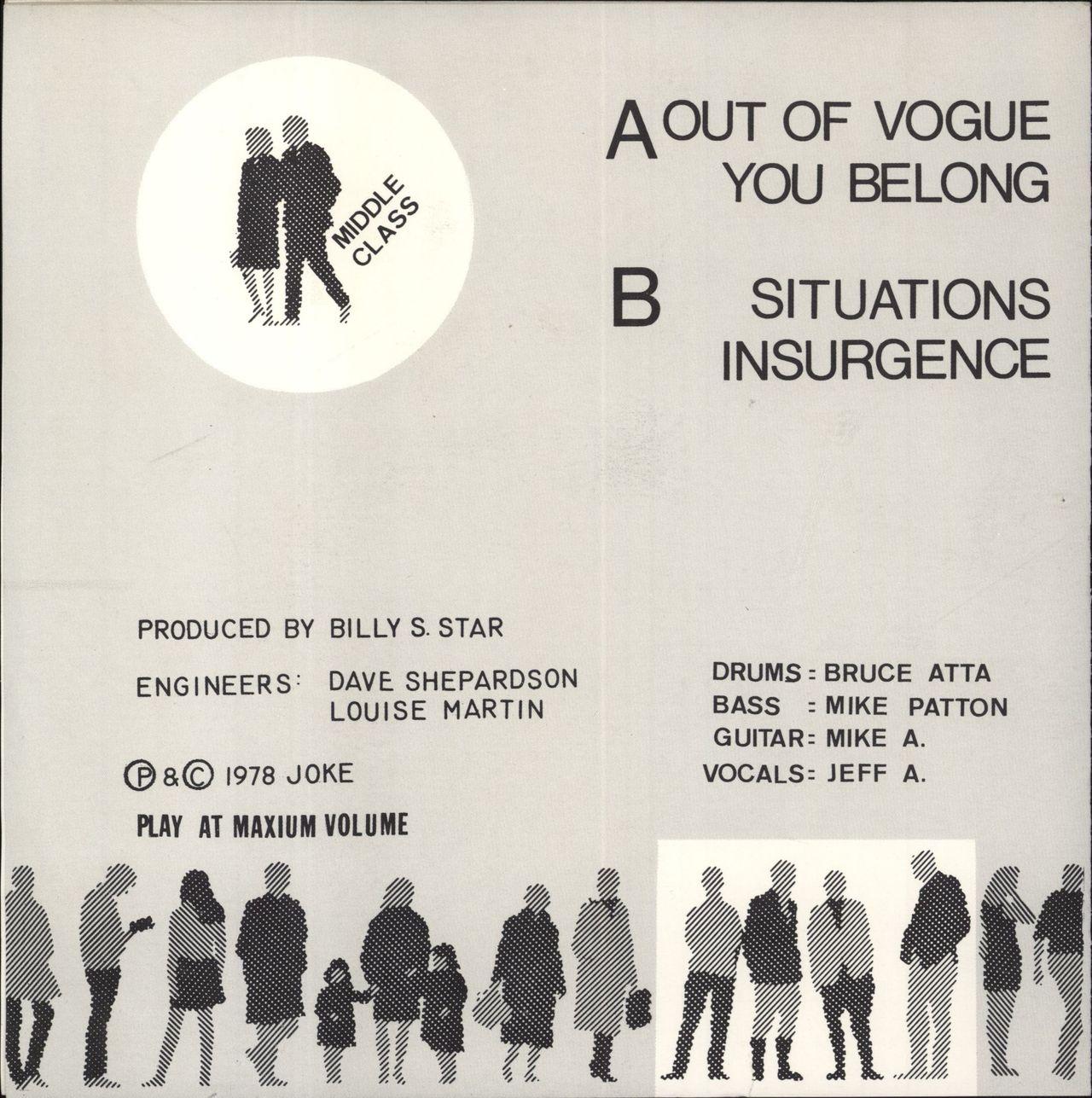 Out of Vogue is the debut EP by American punk rock band Middle Class, released in January 1979.Along with Black Flag's Nervous Breakdown EP, this album was often considered the first record of the hardcore punk genre.