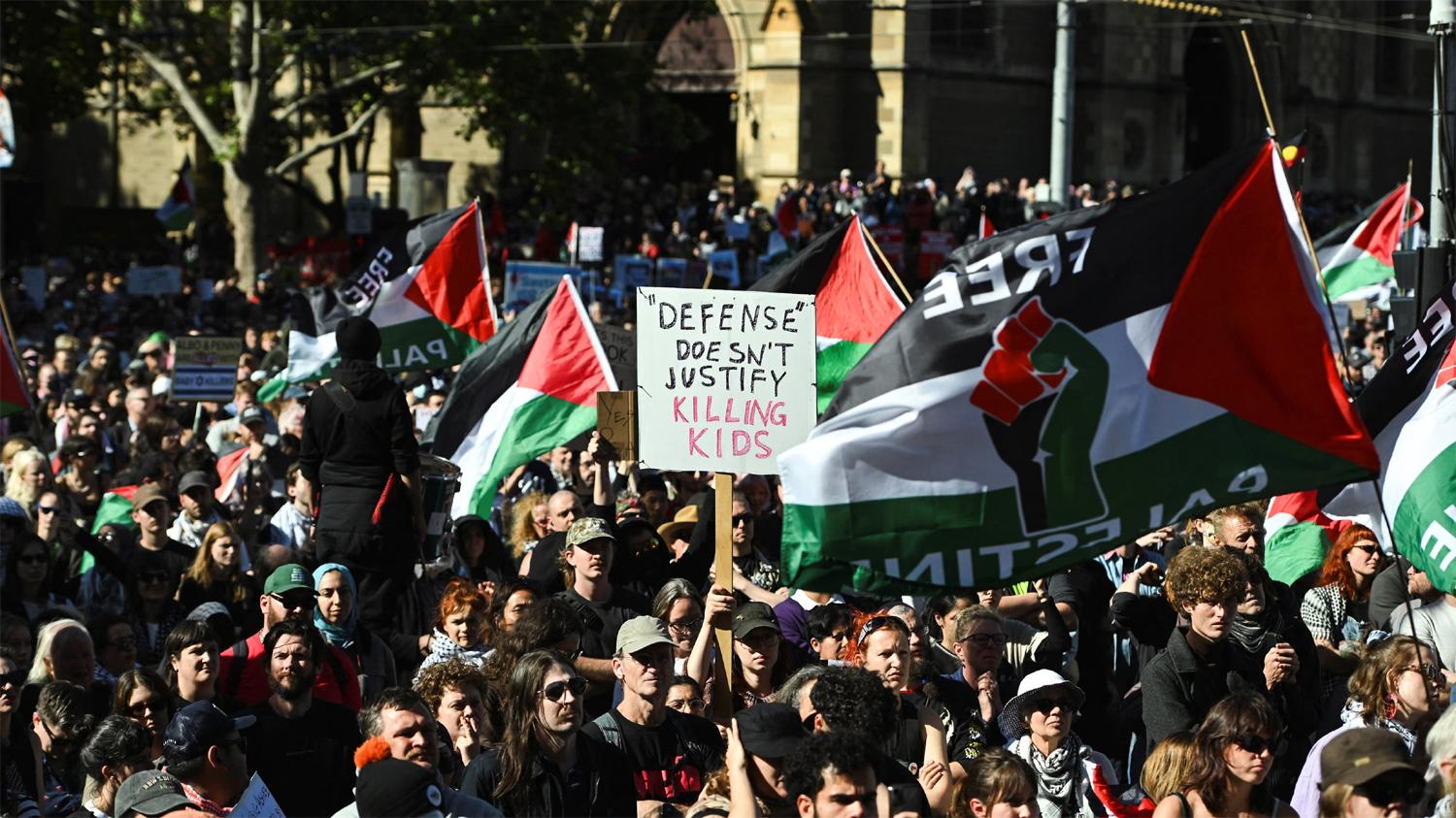 Thousands have shown up to protest the war criminals visit in Melbourne