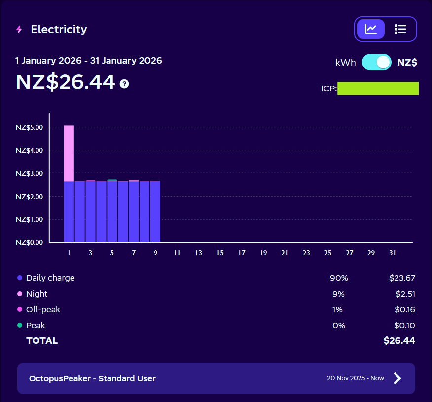 And showing how lopsided payment for export is... Night0% 0.48 kWh - 0% $0.02Off-peak53% 121.69 kWh - 33% $12.17Peak47% 108.92 kWh - 67% $25.05That 53% of my exports only accounted for 33% of the feed-in credit sucks a bit. This is for the same 9 day period as the imports/charges.I could absolutely game this with importing at night, dumping the entire lot, charge thru day, dump in the evening but it's a lot of extra cycles on the battery.