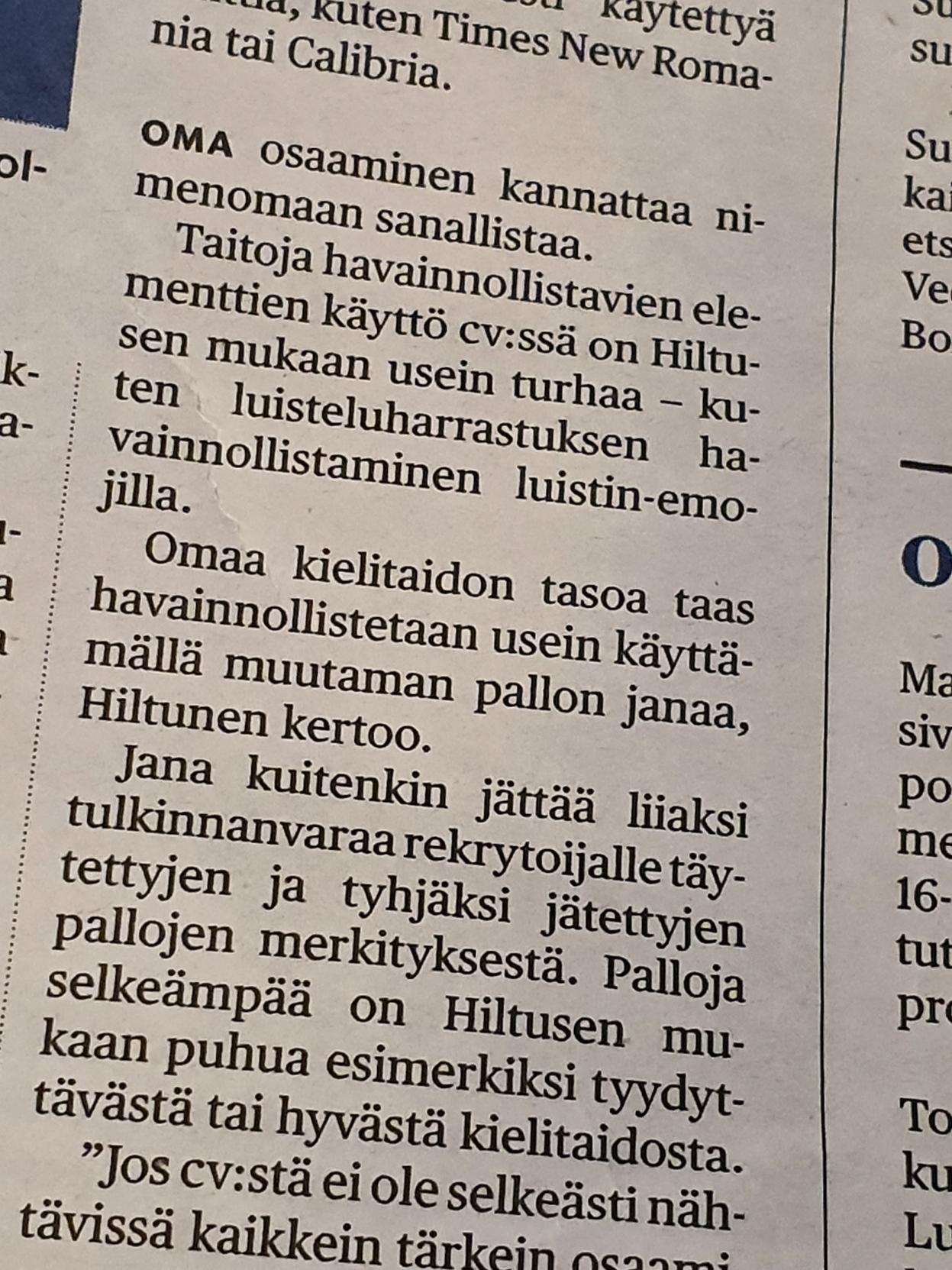 Kun kirjoitin ansioluetteloista, ei tullut edes mieleen että joku laittaisi harrastus-kohtaan emojeita tai kuvaisi kielitaitoaan janapalloilla 🥶 onneksi niitä ei ole myöskään yliopistolla näkynyt.