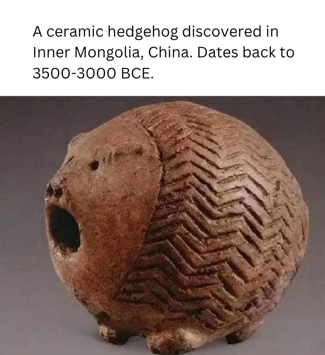 Tärkeää. Kivikautinen keraaminen siili Mongoliasta.