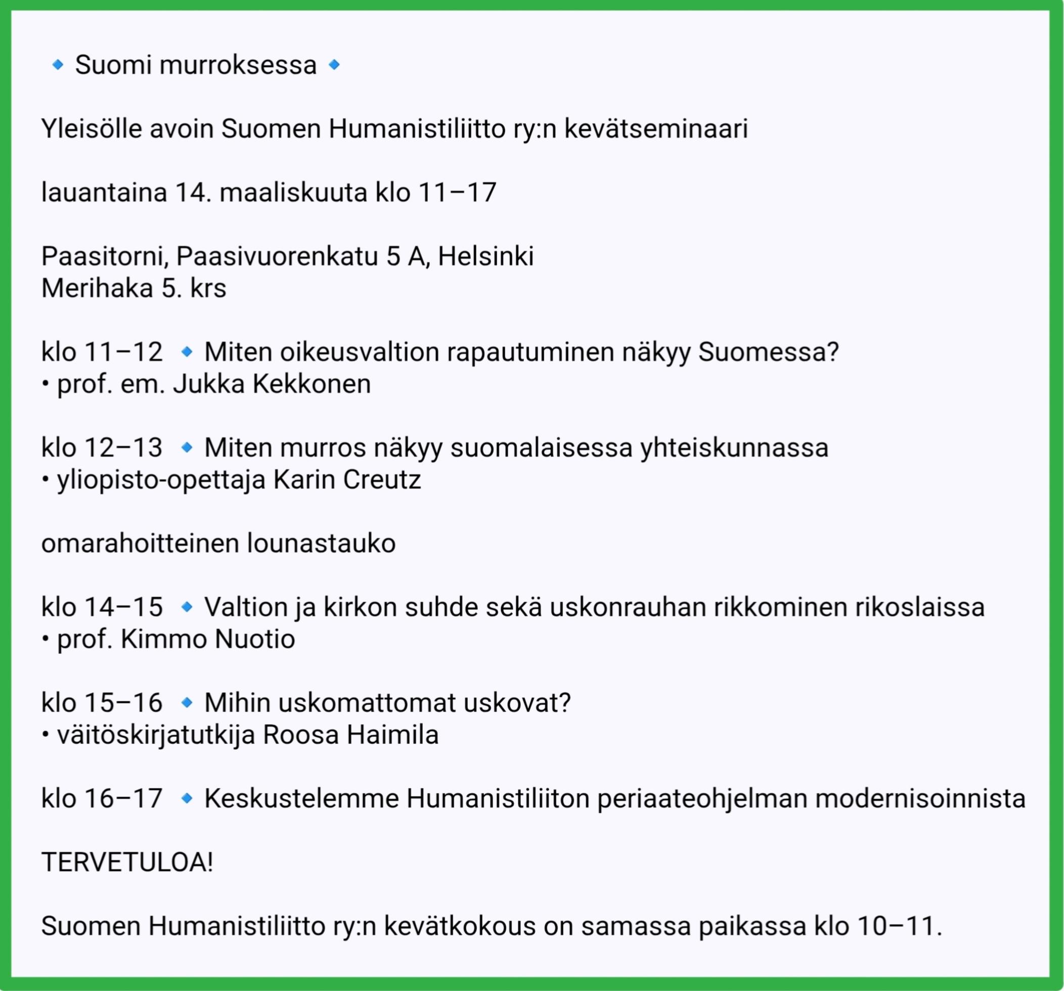 Watching Ignoring Scheduled Pinned Locked Moved Uncategorized humanismi tapahtumat