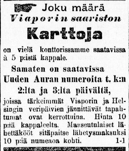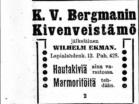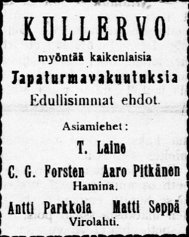 25.11.1911 Haminan Sanomat no 133, s.1http://digi.kansalliskirjasto.fi/sanomalehti/binding/815987?page=1Kansalliskirjaston digitoidut aineistot