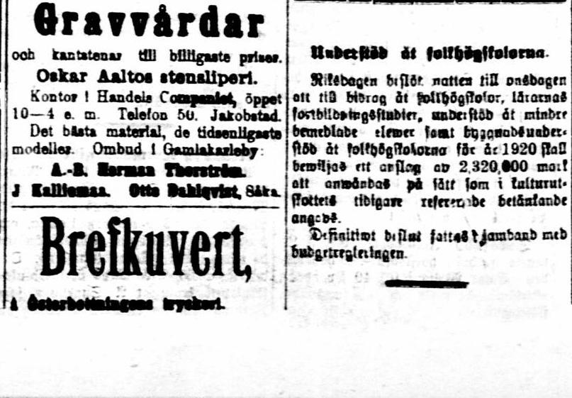 02.03.1920 Österbottningen no 18, s.1http://digi.kansalliskirjasto.fi/sanomalehti/binding/1273579?page=1Kansalliskirjaston digitoidut aineistot