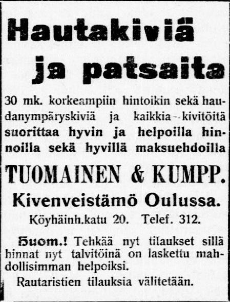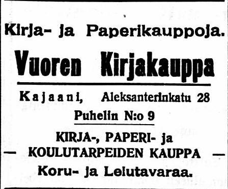 18.09.1920 Kainuun Sanomat no 104, s.1http://digi.kansalliskirjasto.fi/sanomalehti/binding/1203083?page=1Kansalliskirjaston digitoidut aineistot