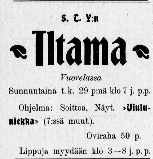 27.11.1912 Uusi Suometar no 275, s.1http://digi.kansalliskirjasto.fi/sanomalehti/binding/1196869?page=1Kansalliskirjaston digitoidut aineistot