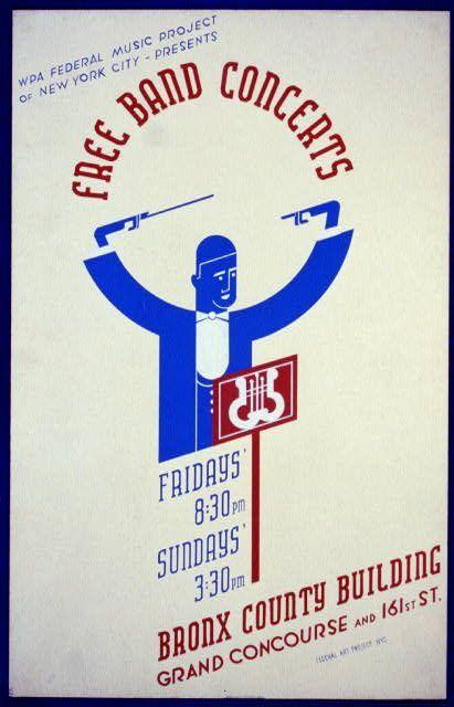 WPA Federal Music Project of New York City presents free band concerts at the Bronx County Building [between 1936 and 1941]1 print on board (poster) : silkscreen, color.