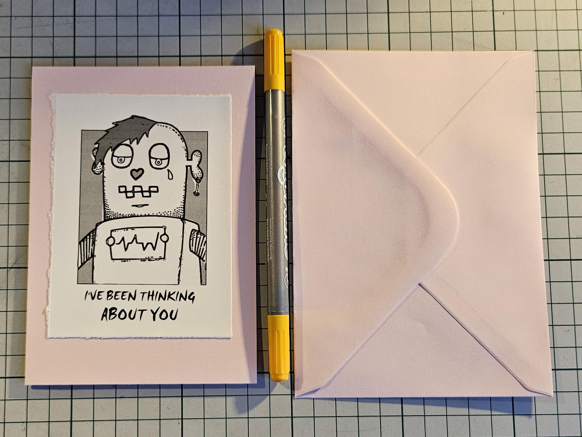 Tein tälläsiä kortti + kuori + kynä -komboja, koska rakastan itse nyhräämistä ja askartelua.